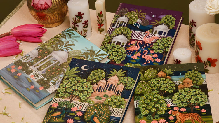Chandani Raatein Notebooks – Handcrafted Beauty for Everyday Notes Inspired by Indian art, made with heart. Bring a touch of art and warmth to your everyday writing with our Chandani Raatein Notebooks.Each notebook features a hand-illustrated cover inspired by Indian miniature art, with lush...